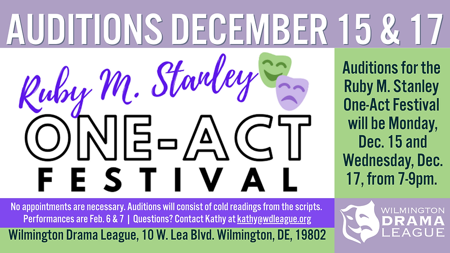 The Wilmington Drama League is supported, in part, by a grant from the Delaware Division of the Arts, a state agency, in partnership with the National Endowment for the Arts. The Division of the Arts promotes Delaware’s arts on DelawareScene.com.